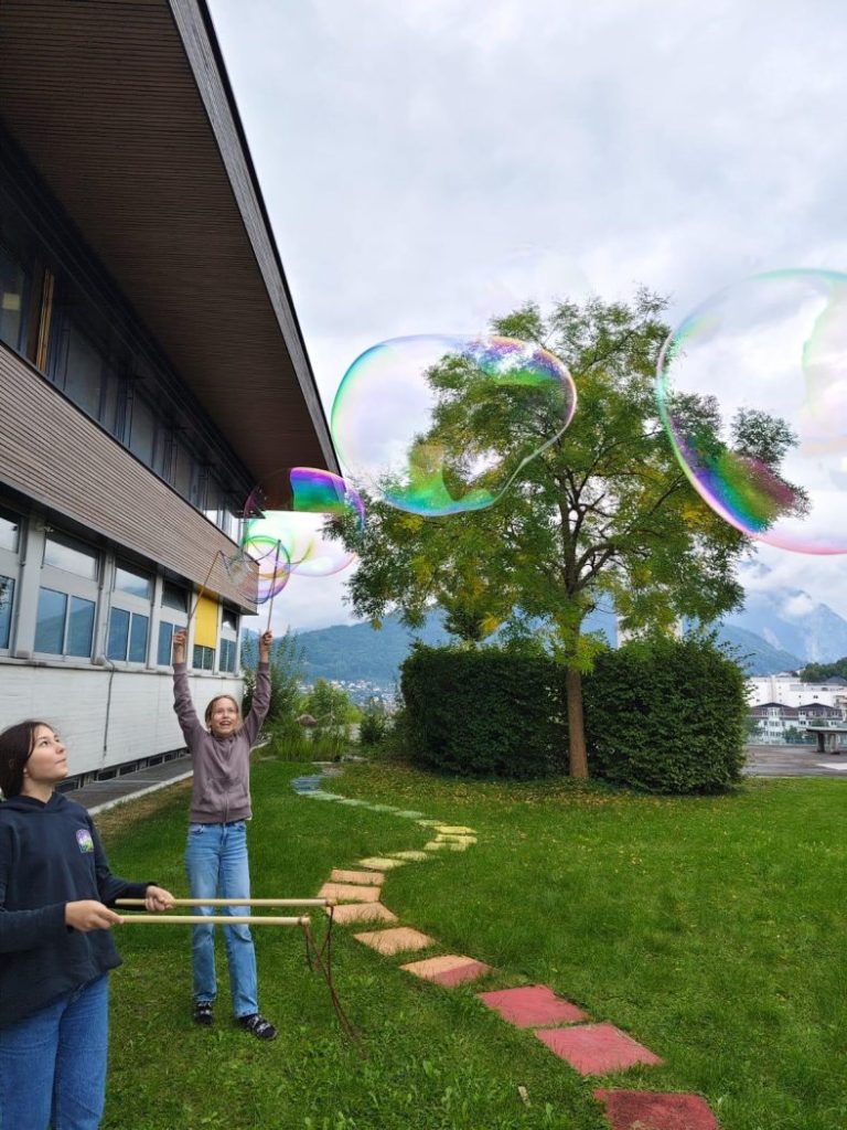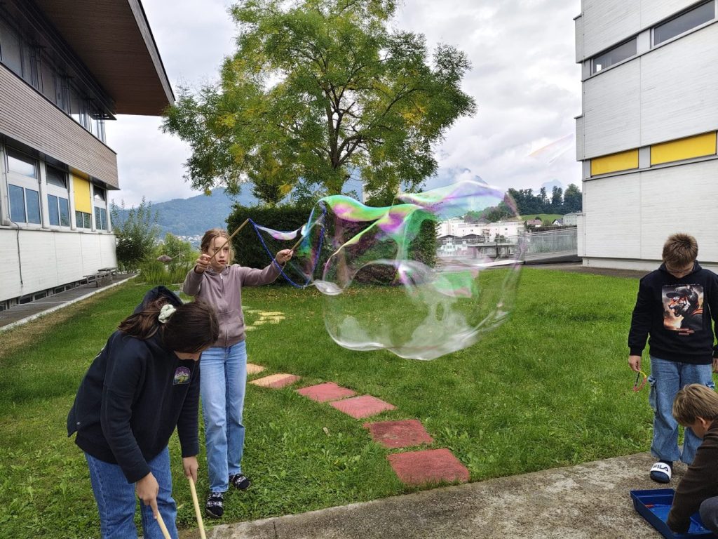 Mit dem neuen Schuljahr haben auch die Werkstätten wieder ihre Tore geöffnet, bereit Neues zu entdecken. Bei den 3. und 4. Klassen startete die Forscherwerkstatt chemisch, mit einem Seifenblasenlabor – stabiler, größer, schöner!
